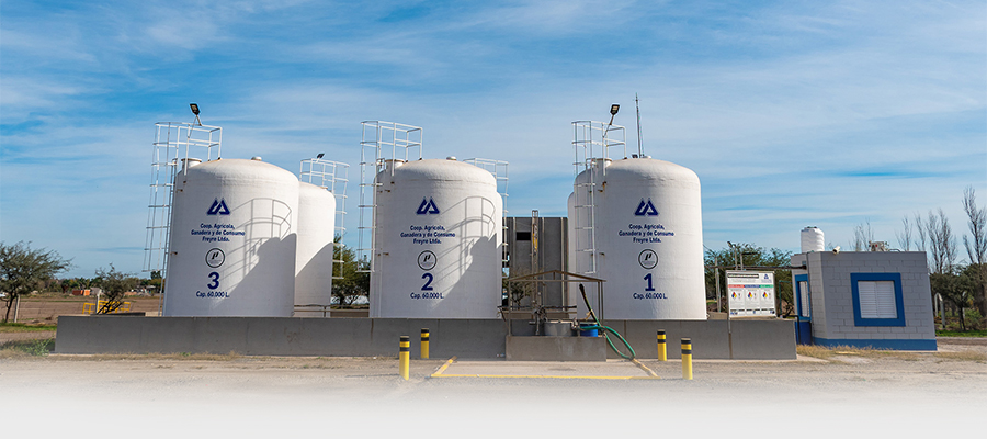 Además, contamos con una PLANTA DE ACOPIO DE FERTILIZANTES LÍQUIDOS con capacidad para almacenar hasta 360.000 litros.